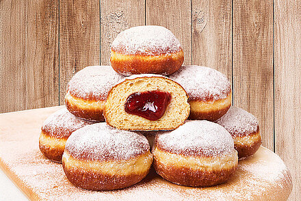 Zu Beginn des Jahres präsentieren wir Ihnen als Konditorhit des Monats eine Auswahl verschiedener Krapfen-Klassiker mit unterschiedlichen Füllungen. Die Krapfen zeichnen sich durch ihre luftige Hefeteigkonsistenz aus und werden großzügig mit hochwertiger Konfitüre gefüllt – sei es Himbeer-Johannisbeere, Aprikose oder unsere Hagebuttenvariante. Wir backen unsere Krapfen nach traditionellem Rezept und verzichten dabei konsequent auf jegliche Zusatzstoffe und Backmittel um Ihnen ein authentisches Genusserlebnis zu bieten.