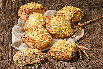 Für die guten Vorsätze zum Jahresbeginn haben wir das passende Produkt des Monats: den Dinkel-Eiweiß-Krusti. Es ist ein rustikaler Mehrkornsemmel aus der Urgetreidesorte Dinkel garniert mit Sonnenblumenkernen. Dinkel ist der Vorfahre des Weizens, hat aber mehr Mineralstoffe, Vitamine und Eiweiß zu bieten als der klassische Weizen. Als Brotbelag passt zum aromatischen Dinkelkrusti sowohl Süßes als auch Herzhaftes.