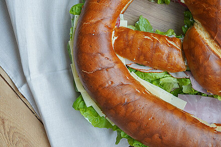 Knusprig, riesig, unwiderstehlich! Unsere Party-Breze ist nicht nur ein Hingucker, sondern auch perfekt zum Teilen. Frisch gebacken, herzhaft belegt und individuell nach Wunsch zusammengestellt – ideal für Geburtstage, Feiern oder Meetings.